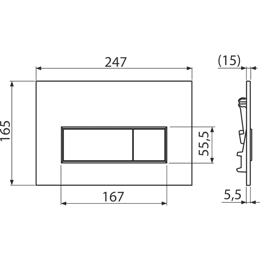 • Tlačítko minimálně vystupuje nad obklad díky tlouštce pouhých 5,5 mm