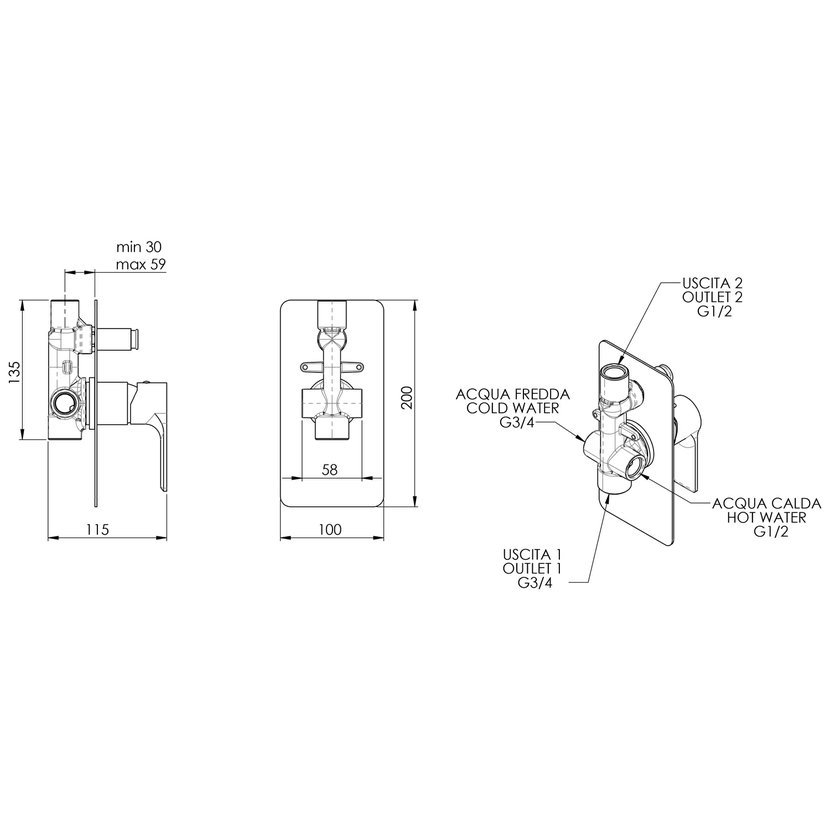 Parametry produktu  PAX podomítková sprchová baterie, 2 výstupy, chrom