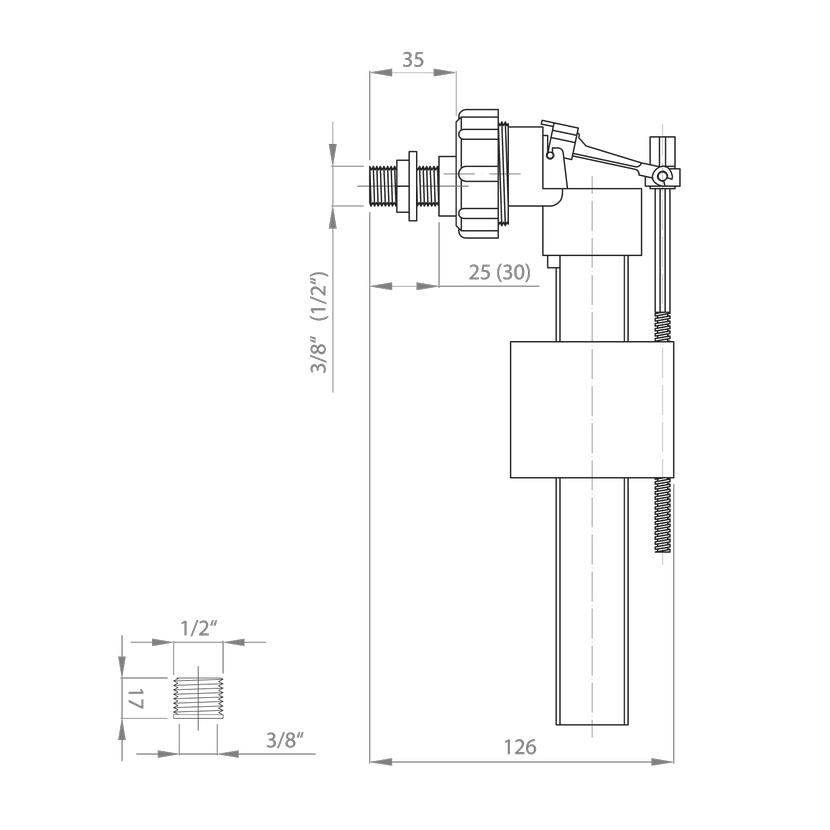 Plovákový ventil 1/2+3/8, boční, plast