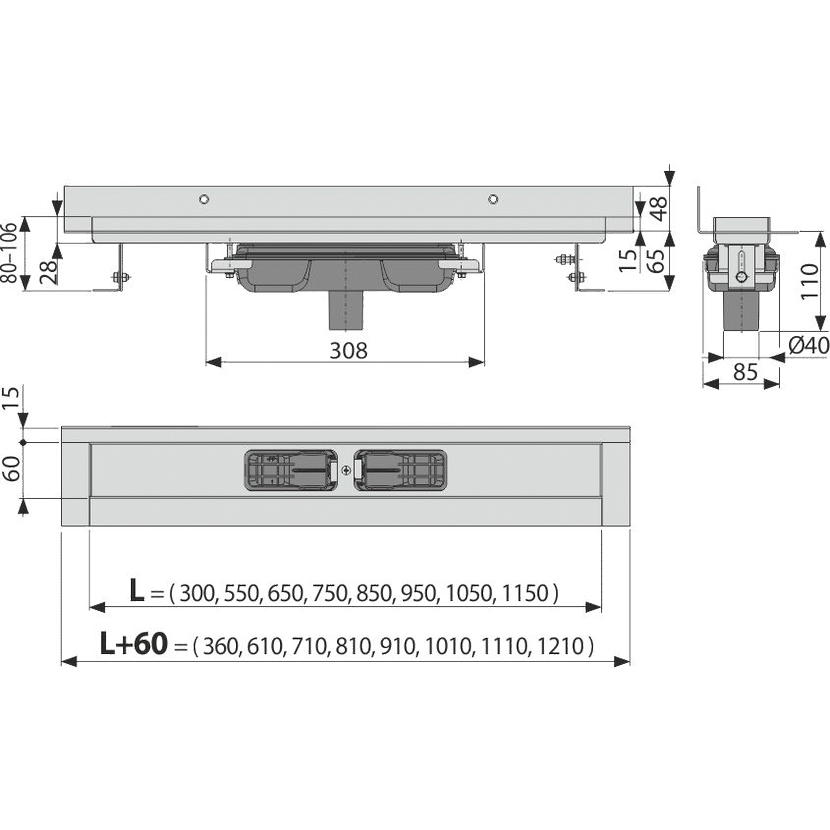 Parametry produktu Podlahový žlab s okrajem pro plný rošt a s pevným límcem ke stěně, svislý odtok APZ1116-55