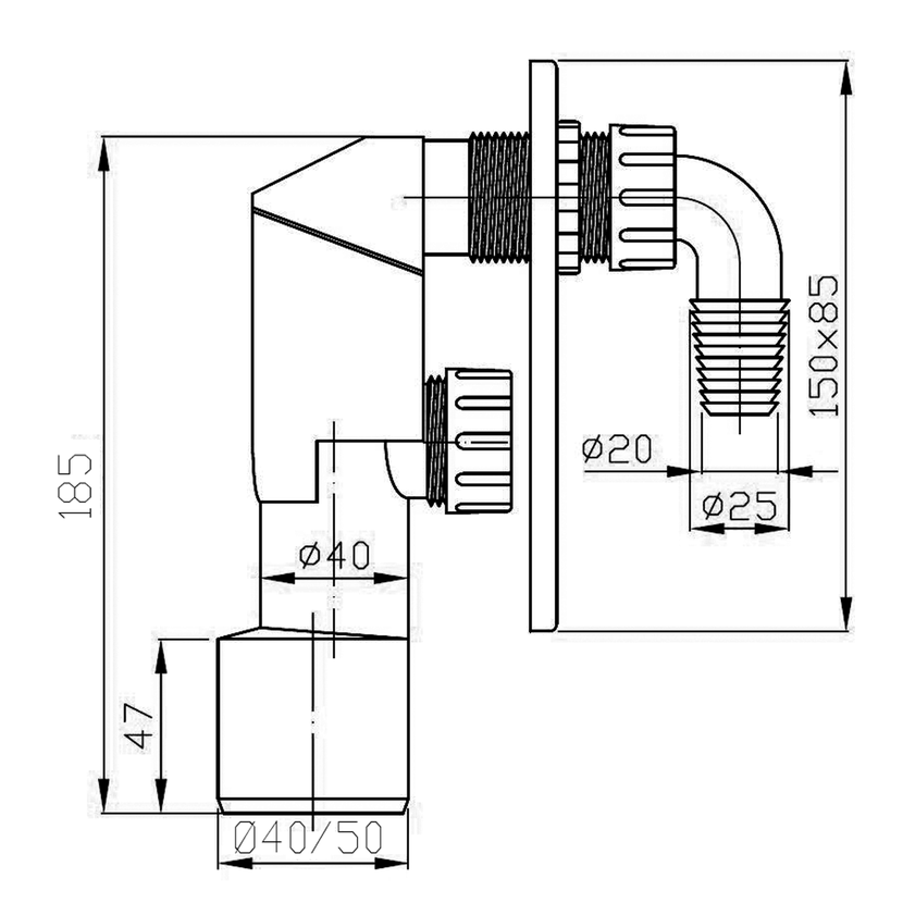 Parametry produktu  Podomítkový pračkový sifon, 2 přípojky, DN40/50, nerez lesk