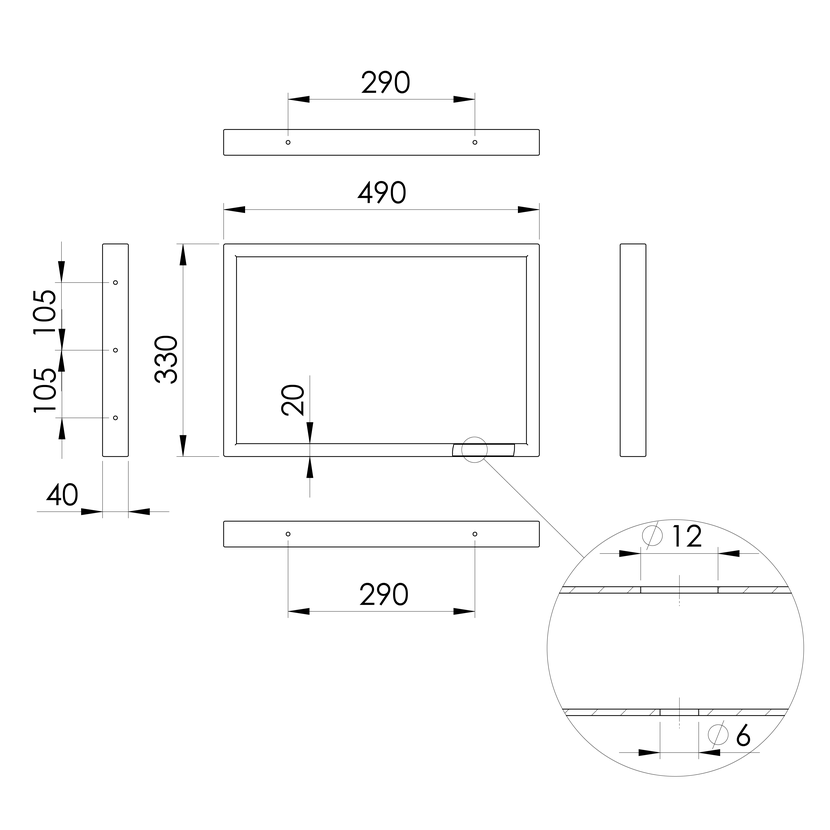 Parametry produktu  Podpěrná konzole 490x330x40mm, ocel, chrom, 1 ks