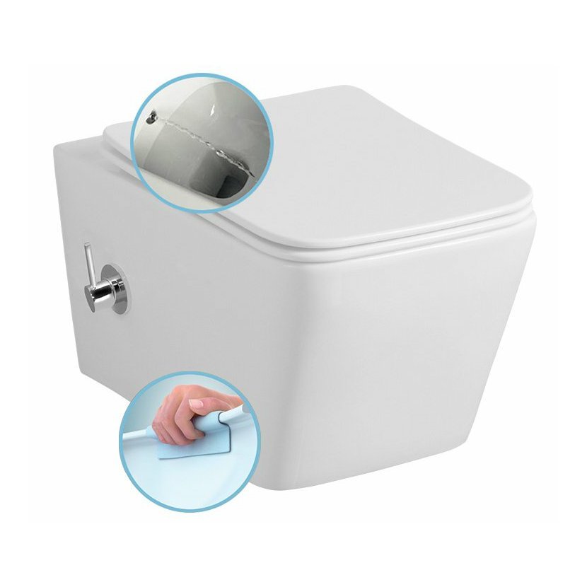 Parametry produktu  PORTO CLEANWASH závěsná WC mísa Rimless, integrovaná baterie a bidet. sprška, 36x52cm, bíl