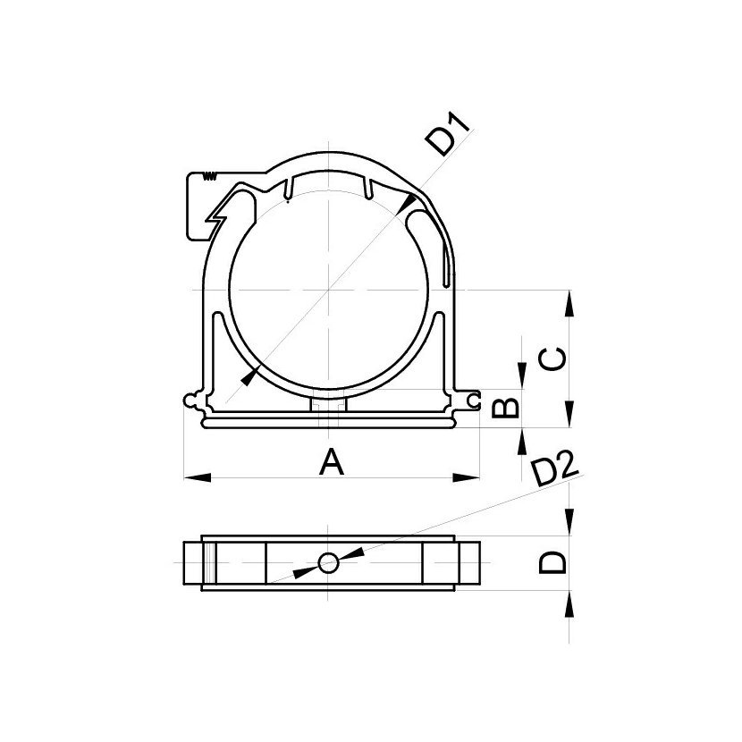 - Materiál PP - Použití v rozmezí teplot -50 °C až +95 °C - Montážní teplota > 5 °C - A : 50,5 mm - B : 13 mm - C : 25 mm - D : 17 mm