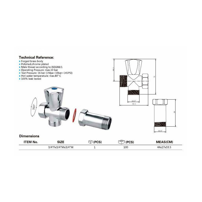 Parametry produktu  Pračkový ventil před nástěnnou baterii se zpět. ventilem 3/4"x3/4", chrom