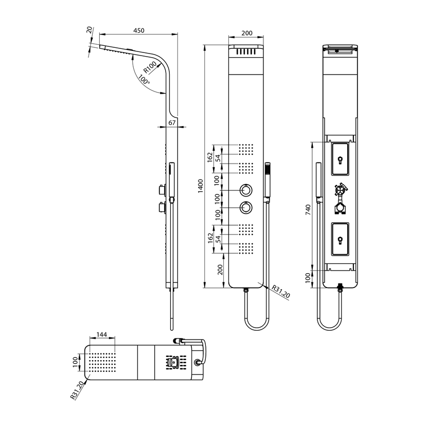 Parametry produktu  PRESTIGE termostatický sprchový panel 200x1400mm, nerez mat