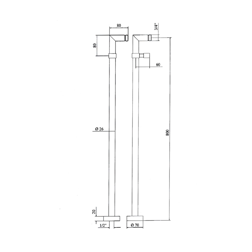 Parametry produktu  Připojení pro instalaci vanové baterie do podlahy (pár), chrom