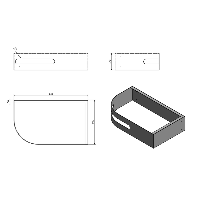 Parametry produktu  PULSE konzole s držákem ručníků, pravá, černá mat