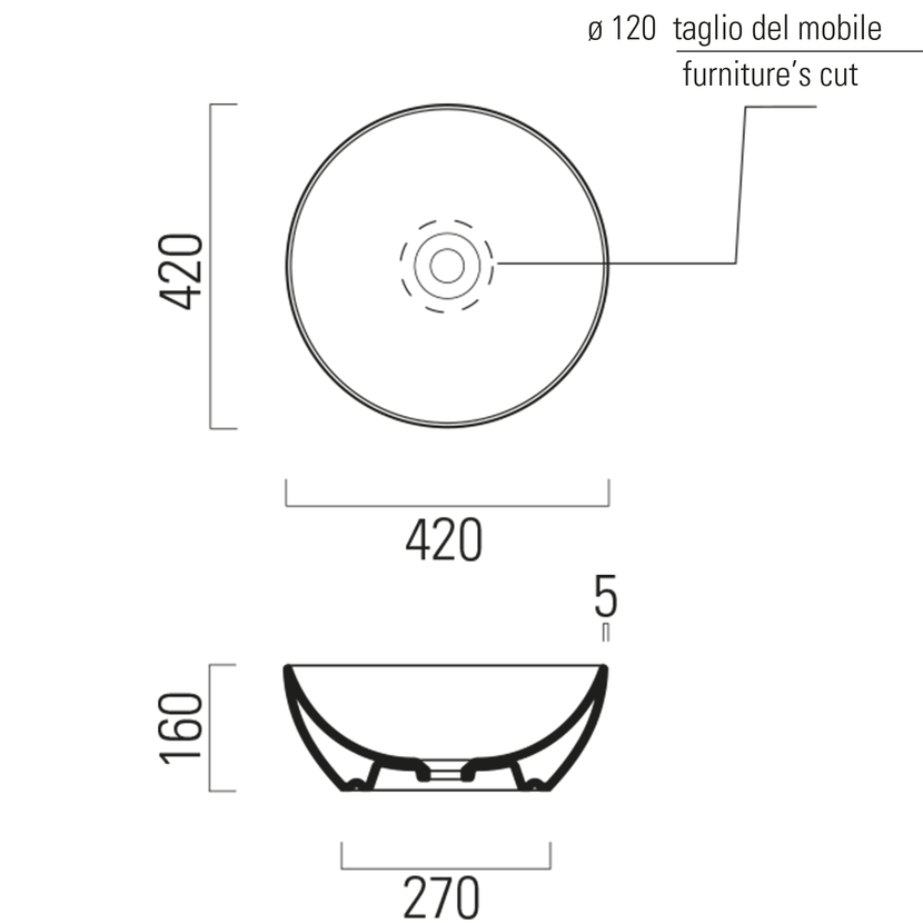 Parametry produktu PURA keramické umyvadlo na desku, průměr 42cm, černá mat