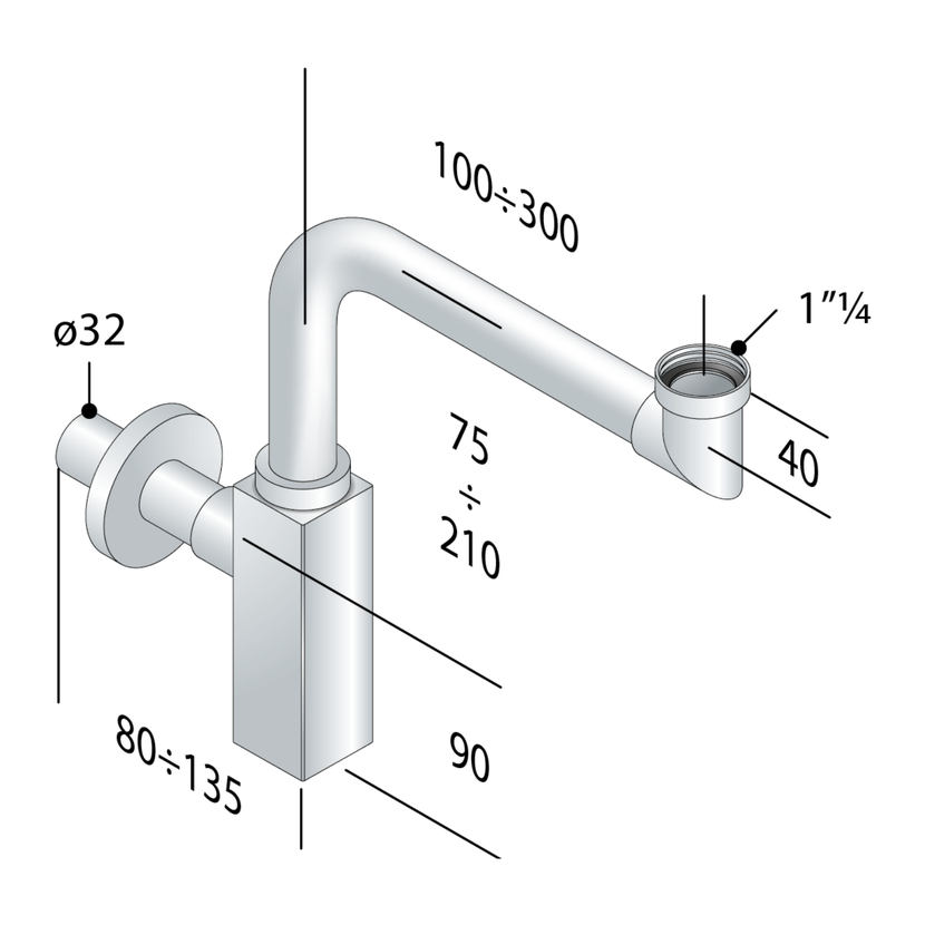 Parametry produktu  QUASAR umyvadlový sifon šetřící místo, 5/4" odpad 32mm, chrom