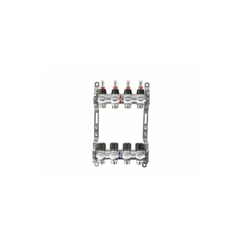 Potrubí se k vývodům připojuje pomocí 3/4" tvarovek dle normy Eurocone. Blok je dále vybaven zátkami a dvojitými montážními konzolami. Rozdělovač je určen k rozvodu průtoku chladicí kapaliny vodních topných systémů k jednotlivým (spotřebičům) topným zařízením nebo skupině zařízení, okruhu podlahového vytápění, samostatné větvi topného systému.
