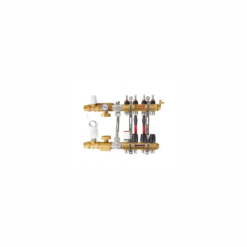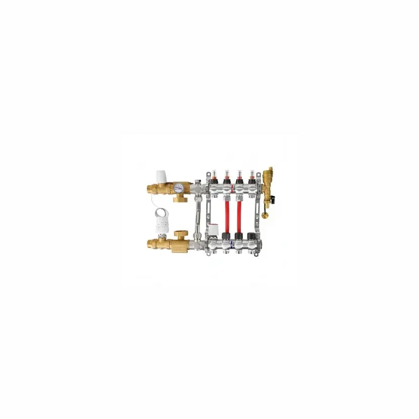 Směšovací jednotka je vyrobena z mosazi metodou horké ražby a pokryta niklem. Uzel se používá ve vestavěných topných systémech, jako jsou teplé podlahy, teplé stěny, vytápění otevřených ploch atd. Čerpadlo-směšovací jednotka je vhodná pro společné použití s ??kolektory distribuce tepla.