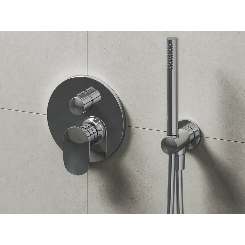 Podomítkový vývod s držákem sprchy. V provedení lesklý chrom.
