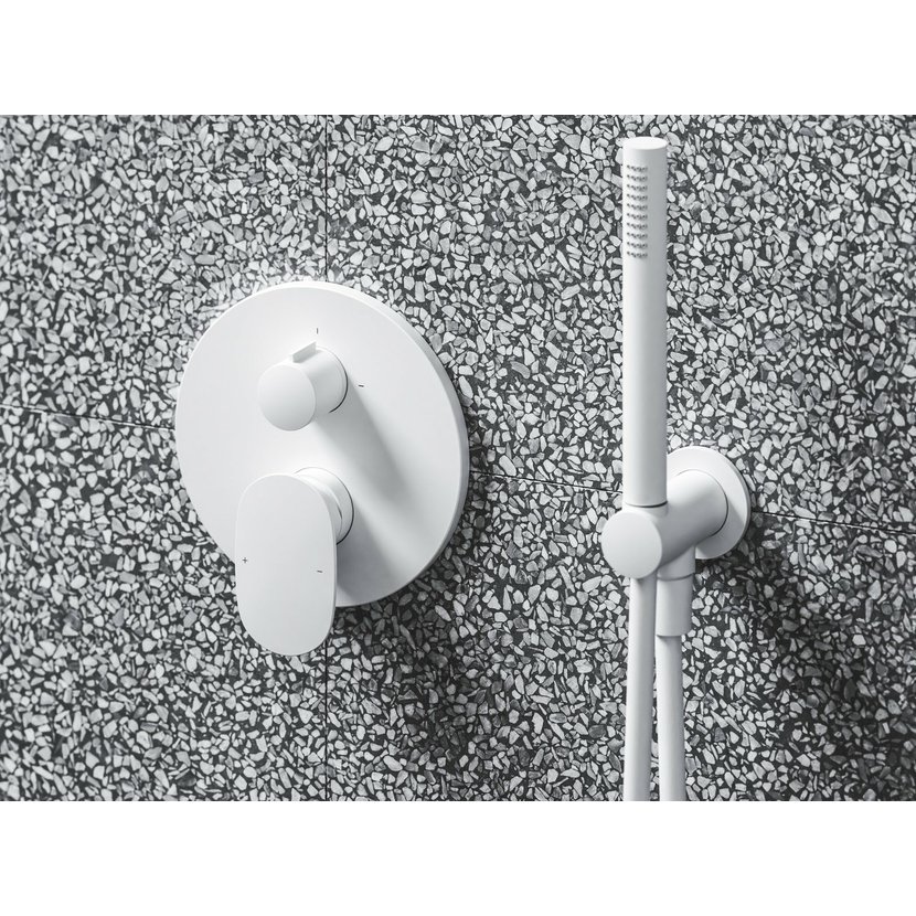 Podomítkový vývod s držákem sprchy. V bílém matném provedení.