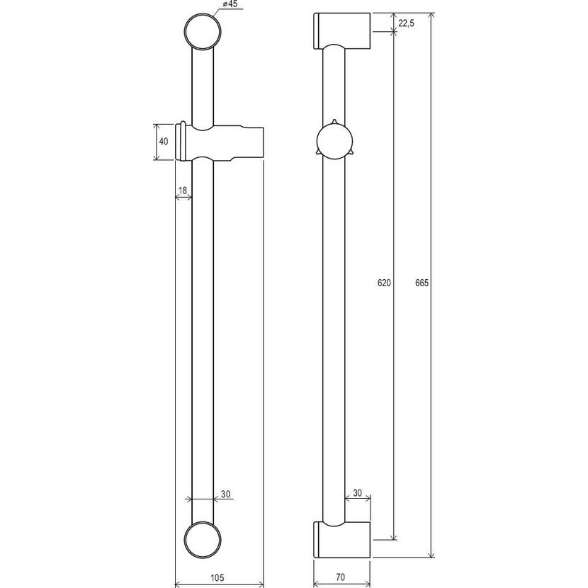 Tyč s posuvným držákem sprchy. V provedení lesklý chrom.