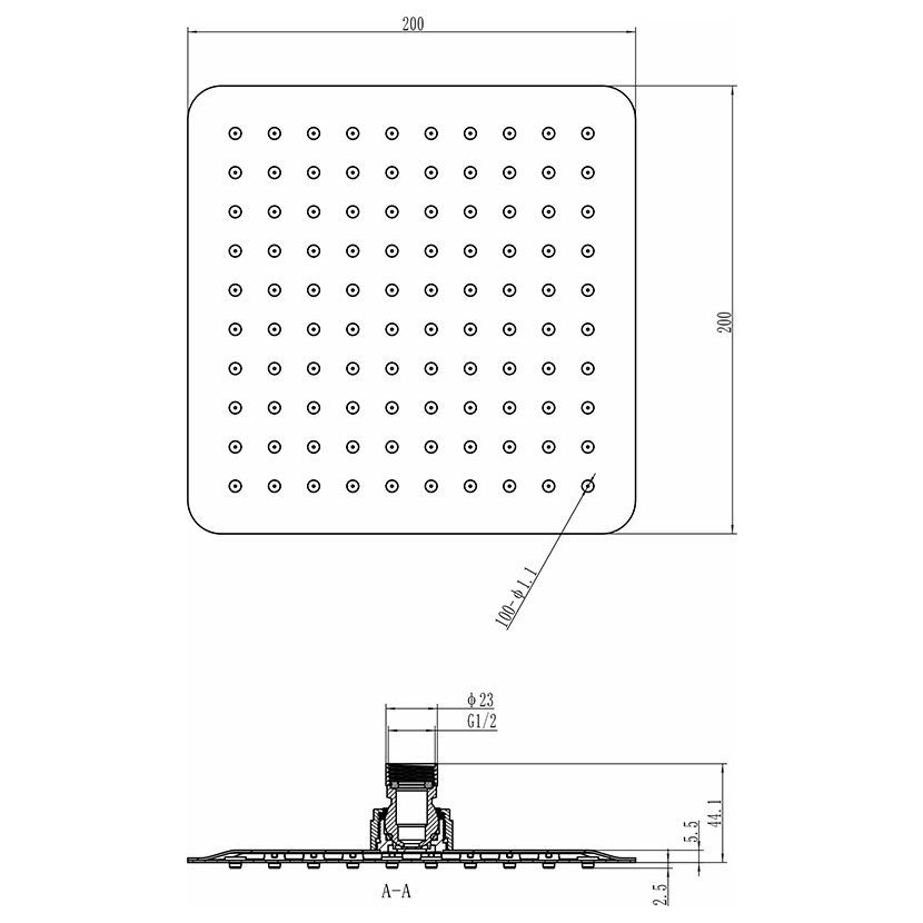 Parametry produktu RAVAK 982.01CR Hlavová sprcha Chrome čtvercová, 200 mm, chrom