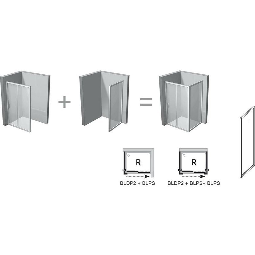 Výrobek tvoří jeden pevný díl. Montuje se do obloženého rohu koupelny (v kombinaci se sprchovými dveřmi BLDP2) na vaničky RAVAK Perseus Pro, Perseus Pro Flat, Perseus Pro Chrome, Gigant Pro, Gigant Pro Flat, Gigant Pro Chrome nebo přímo na podlahu se zabudovaným odtokovým žlabem či podlahovou vpustí. Pevná stěna není určena k samostatnému použití. Kombinací sprchových dveří se dvěma pevnými stěnami typu BLPS vytvoříte sprchový kout ve tvaru „U“. Použitím nastavovacího profilu BLNPS lze výrobek rozšířit o 20 mm.