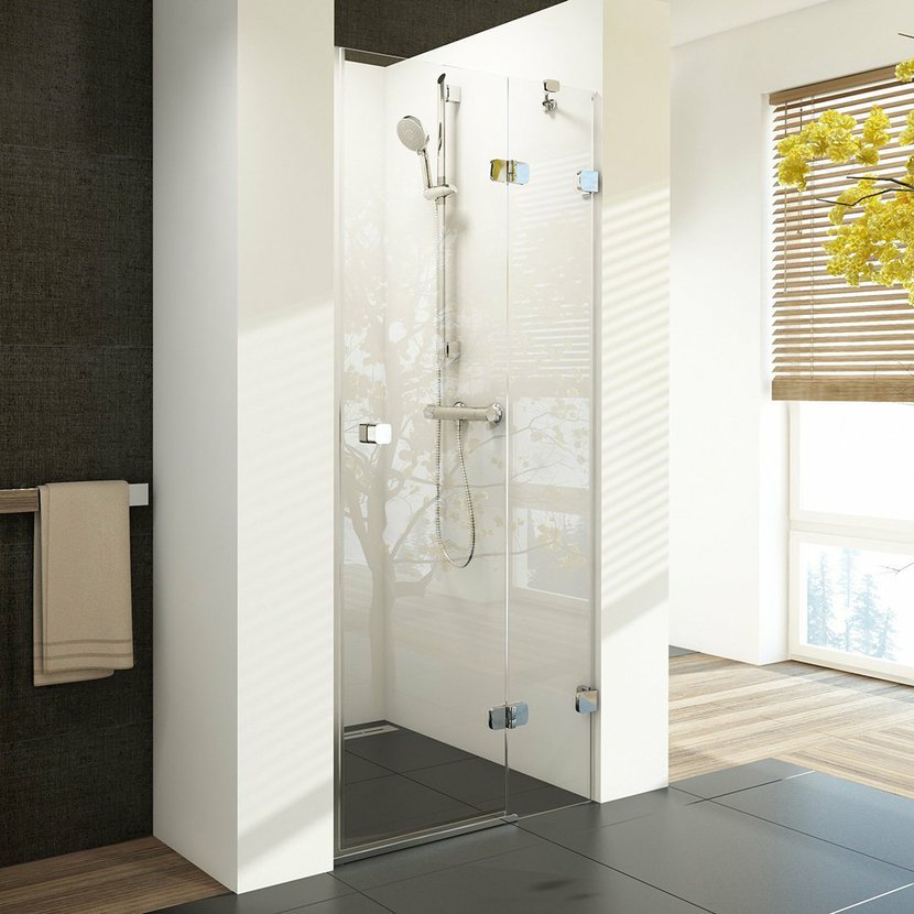 Bezpečnostní sklo sprchových dveří Brilliant s výplní z čirého skla s ochrannou vrstvou RAVAK AntiCalc®. Pro kompletní sprchový kout je nutné přikoupit B-SET v provedení lesklý chrom. Pantový systém otevírání. Pravá varianta.