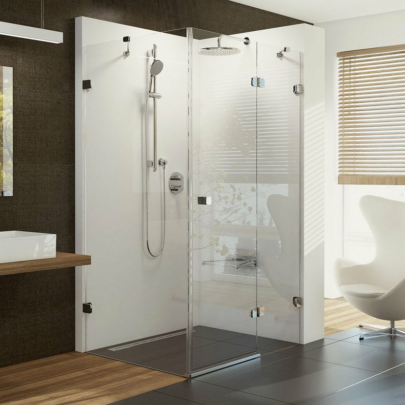 Bezpečnostní sklo rohového sprchového koutu Brilliant s výplní z čirého skla s ochrannou vrstvou RAVAK AntiCalc®. Výrobek je složen ze sprchových dveří a pevné stěny. Pro kompletní sprchový kout je nutné přikoupit B-SET v provedení lesklý chrom. Pantový systém otevírání. Pravá varianta.