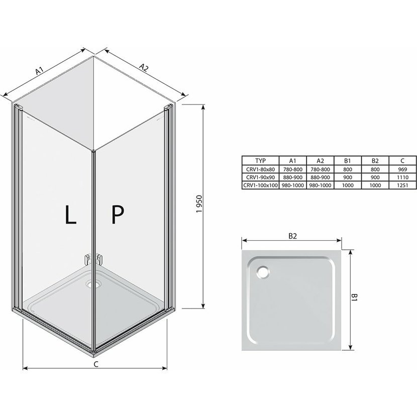 Parametry produktu RAVAK Chrome CRV1-90 1/2 rohového sprchového koutu bílá+transparent