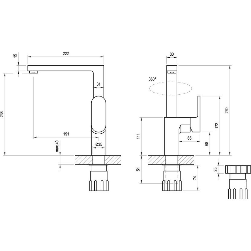 Parametry produktu RAVAK CR 016.00CR Umyvadlová/dřezová baterie 265 mm, chrom