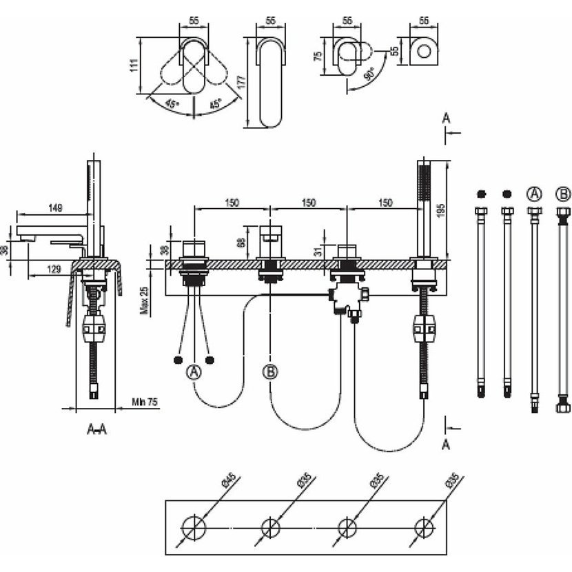 Parametry produktu RAVAK CR 026.00CR Vanová 4otvorová baterie, se setem, chrom