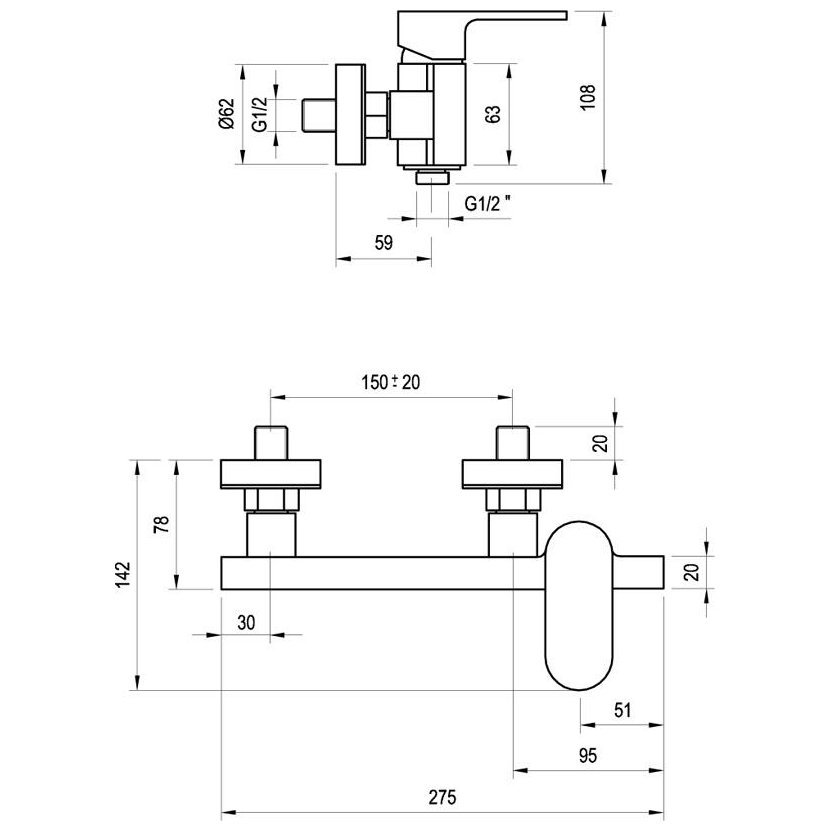 Parametry produktu RAVAK CR 032.00CR Sprchová nástěnná baterie, bez setu, chrom