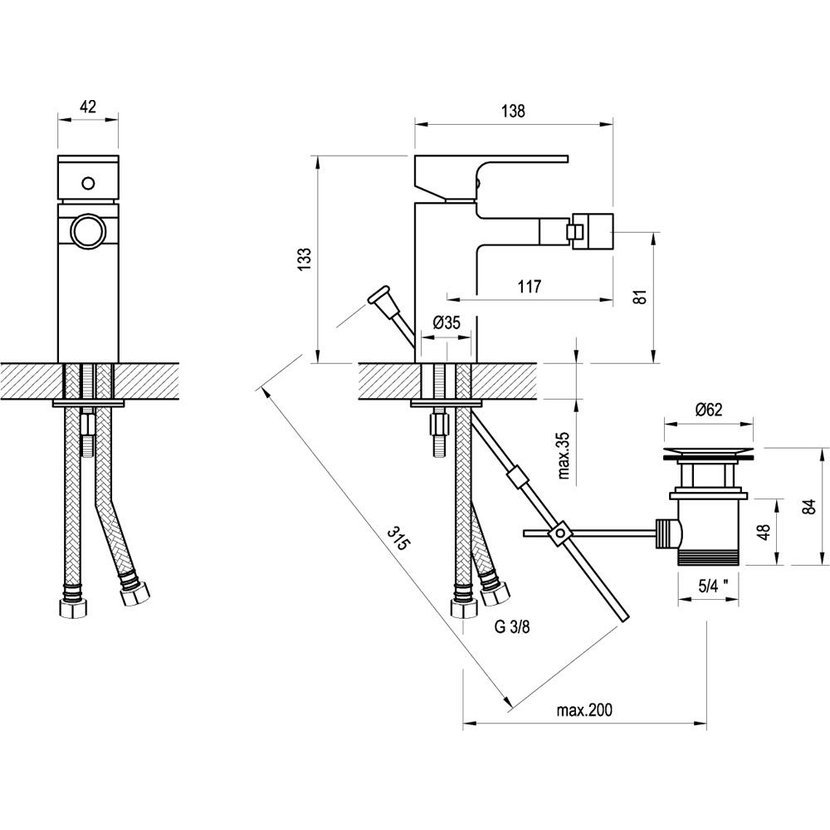 Parametry produktu RAVAK CR 055.00CR Bidetová stojánková baterie 140 mm, s výpustí, chrom