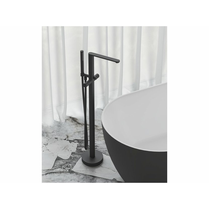 Vanová baterie do podlahy Chrome II se sprchovým setem, určená pro R-box. V černém provedení.