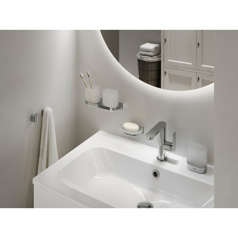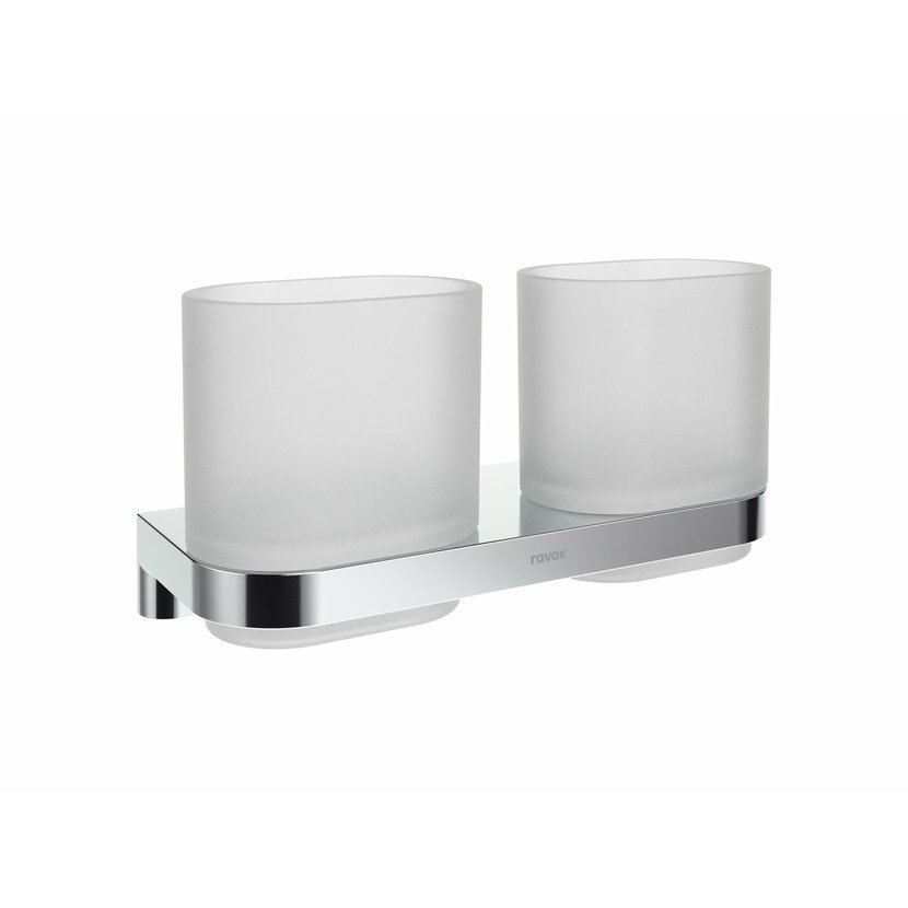 Držák se dvěma skleničkami se montuje na dvě hmoždinky a ustavovací kovovou upínací desku. Rozteč šroubků je 66 mm. Montážní set je součástí balení. Držák je na vnitřní straně opatřen plastovým kroužkem pro měkké dosednutí skleněné nádoby. Pro ucelené řešení a designový soulad koupelny doporučujeme kombinovat s ostatními koupelnovými doplňky Chrome II. Na vnější čištění doporučujeme používat přípravek Ravak Cleaner Chrome.
