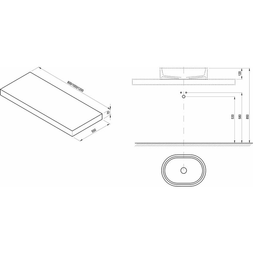 Deska I se na zeď upevňuje pomocí klasických konzolí, které jsou součástí balení. Otvor pro umyvadlo není předvrtán. To umožňuje umístit umyvadlo např. Formy nebo Moon dle vlastní potřeby.