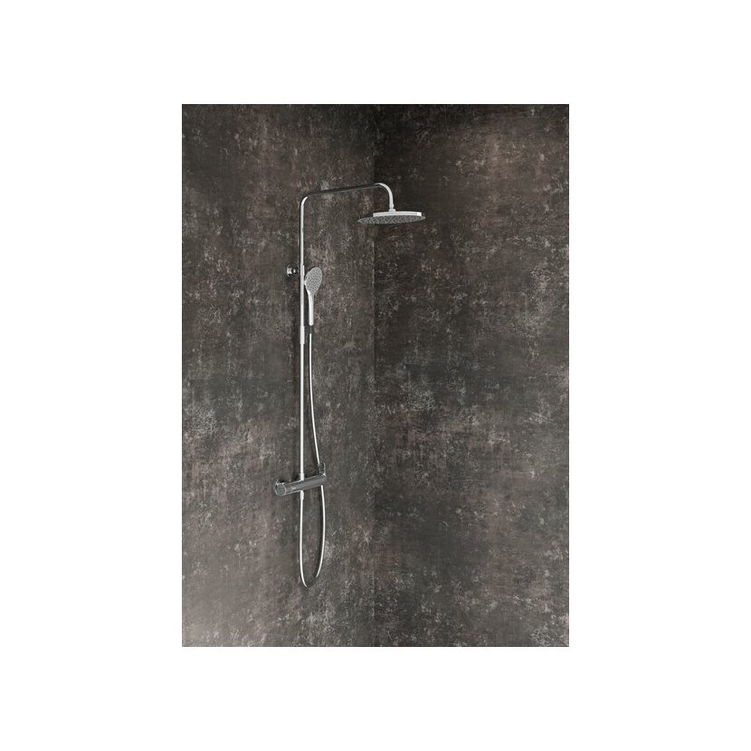 Sprchový sloup se instaluje na stěnu sprchového koutu. Je možné ho výškově přizpůsobit pomocí dotahovací matice - jednoduše ručně, kdykoli po montáži. Přepínačem lze zvolit proud z hlavové nebo ruční sprchy. Hlavová sprcha je vybavena funkcí Rain, kdy voda proudí příjemně ze všech trysek. Ruční sprcha Select disponuje třemi funkcemi intenzity proudu vody. Klasický režim Rain připomíná letní déšť a působí na zklidnění pokožky. Pomocí funkce SoftRain, kdy je přisáván vzduch, si užijete obzvláště hebký déšť, kdy každá kapka je zdrojem požitku. Při nastavení funkce Drop voda protéká velmi jemně a využijete ji zejména při mydlení a mytí hlavy.