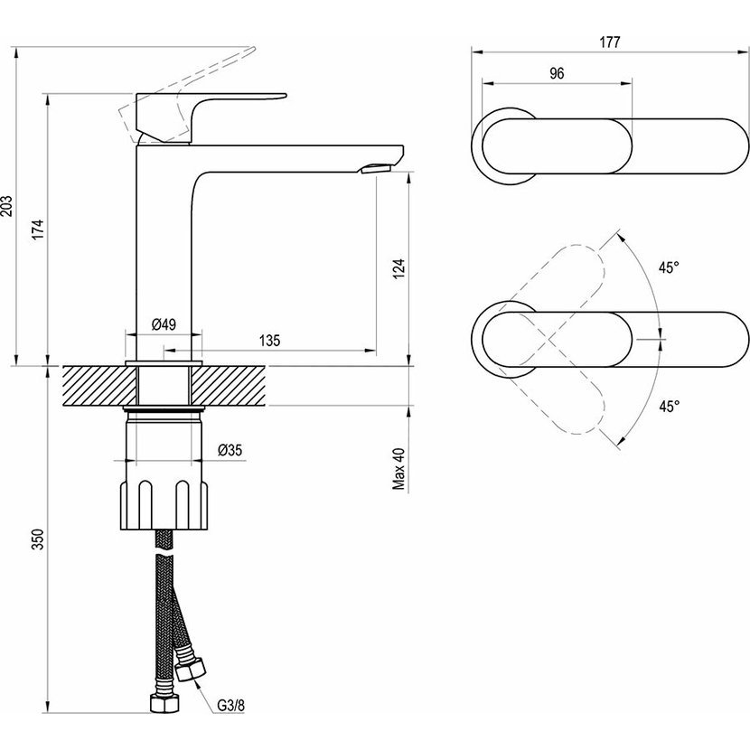 připojovací hadičky: flexibilní 450 mm, průměr DN6, G3/8