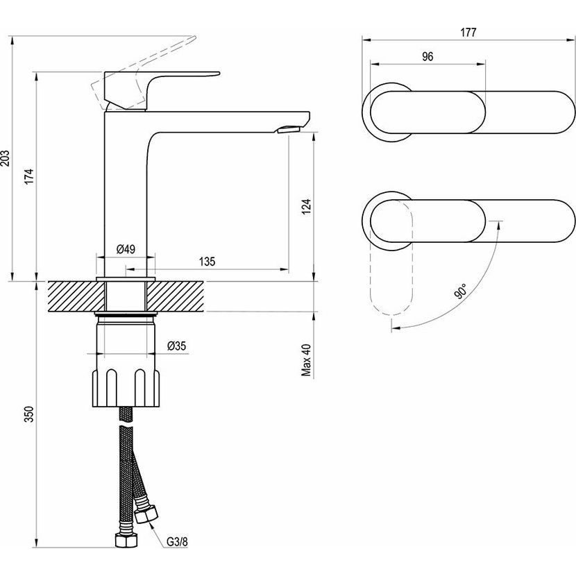 Parametry produktu RAVAK EL 012.21GB Umyvadlová baterie BeCool 170 mm, bez výpusti, Graphite Brushed