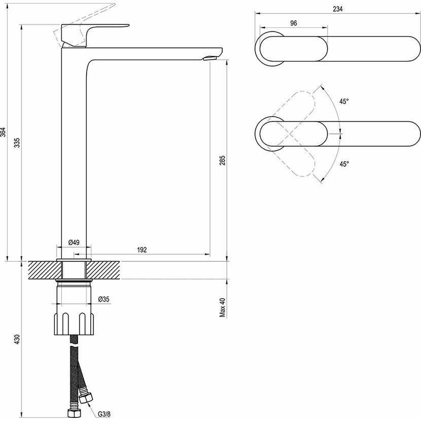 Parametry produktu RAVAK EL 015.20BLM Umyvadlová baterie 335 mm, bez výpusti, Black Matt
