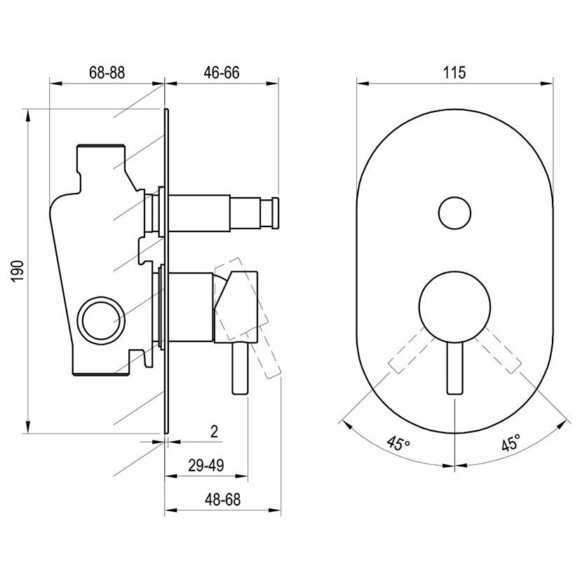 Parametry produktu RAVAK ES 061.00CR.O2 Podomítková baterie, automat, 2cestná s tělesem, Chrome