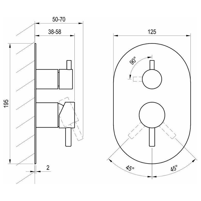 Parametry produktu RAVAK ES 065.00CR.O2.RB07E Podomítková baterie, 2cestná bez tělesa, Chrome