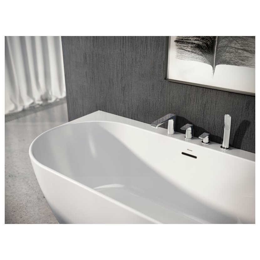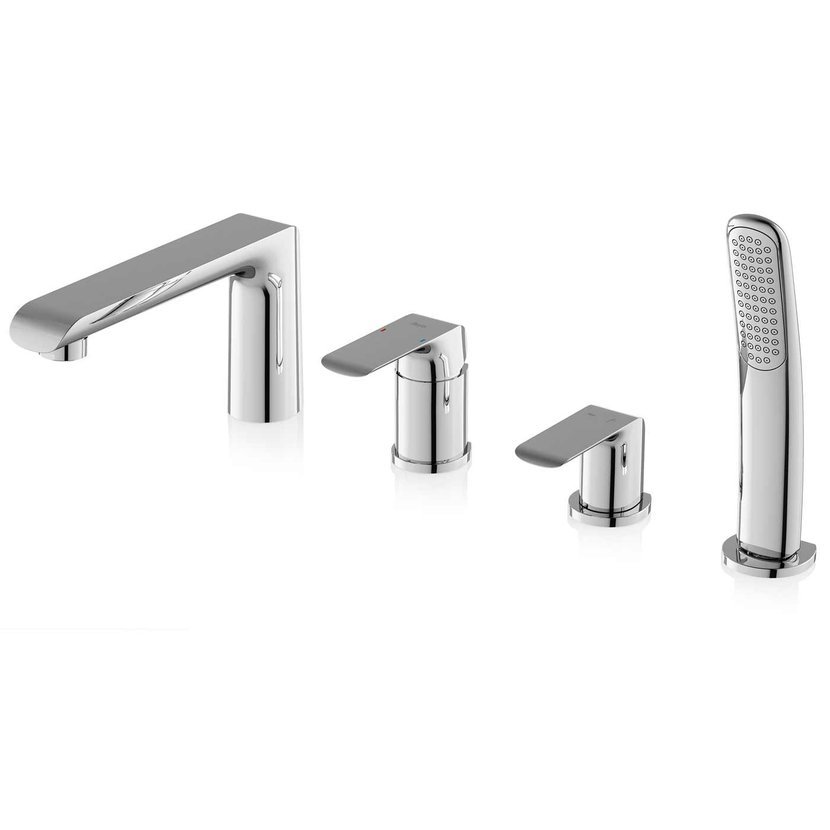 Stojánková čtyřotvorová baterie Flat je vhodná k instalaci do okraje vany. Produkt se skládá ze čtyř designově sladěných komponentů. Pozvolné linie napouštěcího ramena souzní s proudem vody. Baterie s citlivým ovládáním páky poskytuje dokonalou regulaci proudu i teploty vody. Třetí komponent se zase spolehlivě postará o pohodlné přepínání proudu vody mezi napouštěním vany a sprchováním. V posledním otvoru se skrývá trendy vytahovací ruční sprcha.