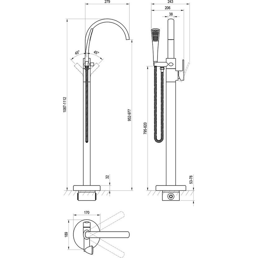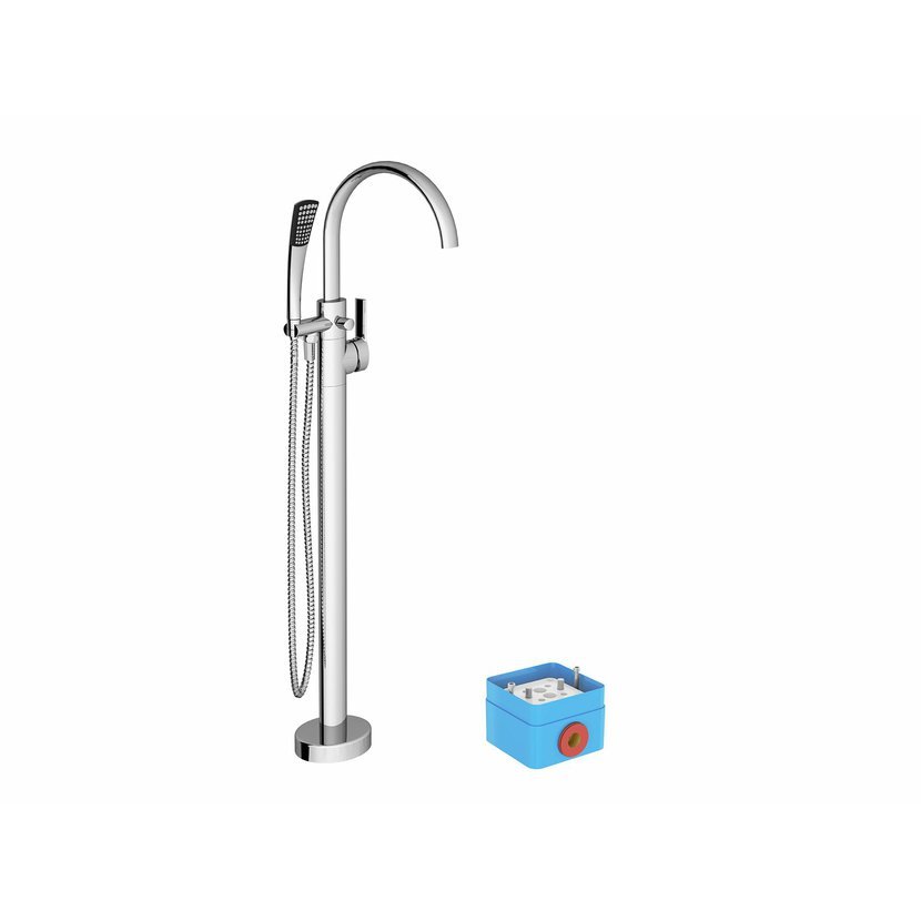 Zapojení vody do R-boxu je na kolmo k vaně. Základní těleso RB 07A.50 není součástí podlahové baterie FM 080.00CR.RB07A a je nutné jej dokoupit. R-box obsahuje materiál pro přichycení k podlaze, nezahrnuje přípojky pro vedení vody ani jiný vodoinstalační materiál. Na vnější čištění doporučujeme používat přípravek RAVAK Cleaner Chrome.
