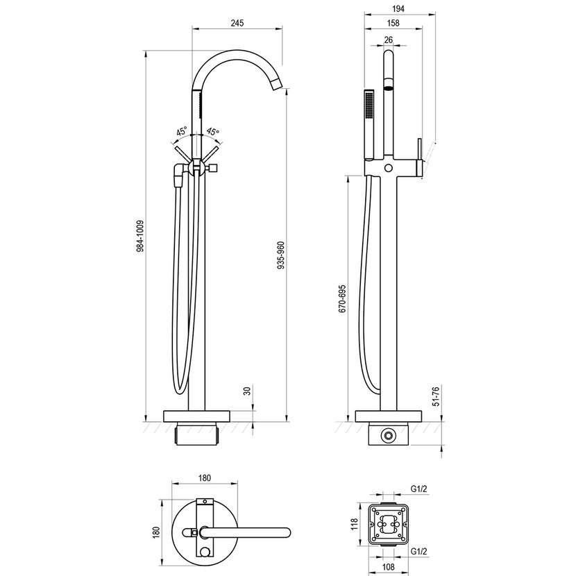 vhodná: k volně stojícím vanám