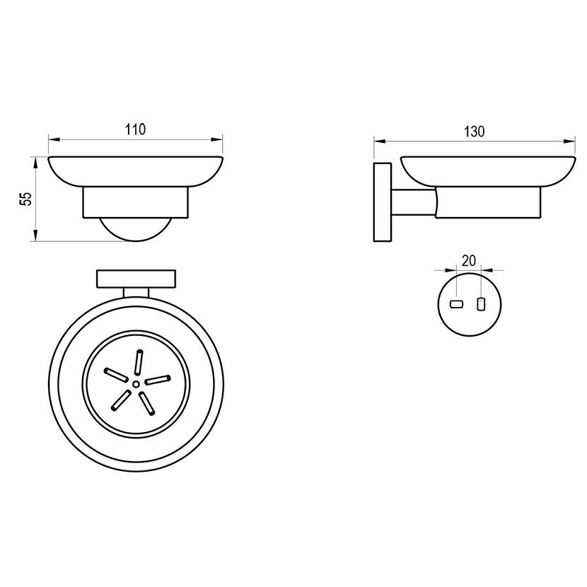 Držák s mýdlenkou se montuje na dvě hmoždinky a ustavovací kovovou upínací desku. Rozteč šroubků je 20 mm. Montážní set je součástí balení. Držák je na vnitřní straně opatřen plastovým kroužkem pro měkké dosednutí skleněné nádoby. Pro ucelené řešení a designový soulad koupelny doporučujeme kombinovat s ostatními koupelnovými doplňky Kona. Na vnější čištění doporučujeme používat přípravek Ravak Cleaner Chrome.