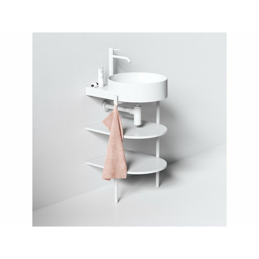 Stojící kovová konstrukce s policemi CS Yard 40 k instalaci umyvadla Yard 40. V bílém matném provedení.