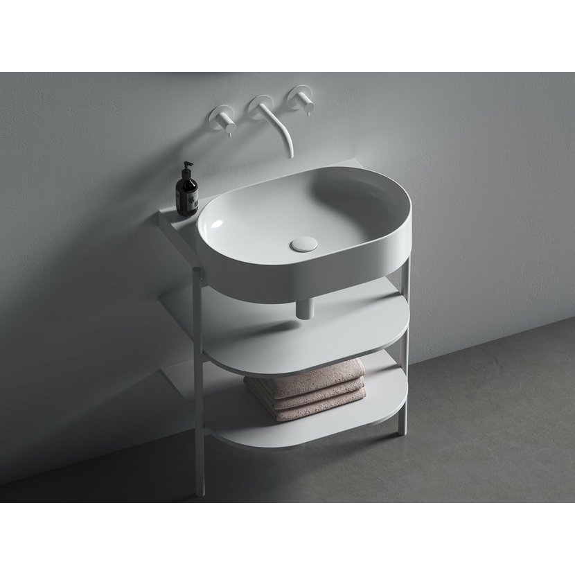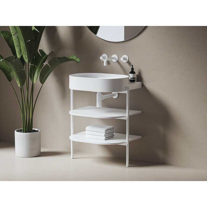 Stojící kovová konstrukce s policemi CS Yard 60 k instalaci umyvadla Yard 60. V bílém matném provedení.
