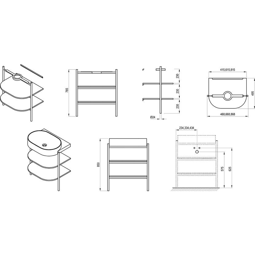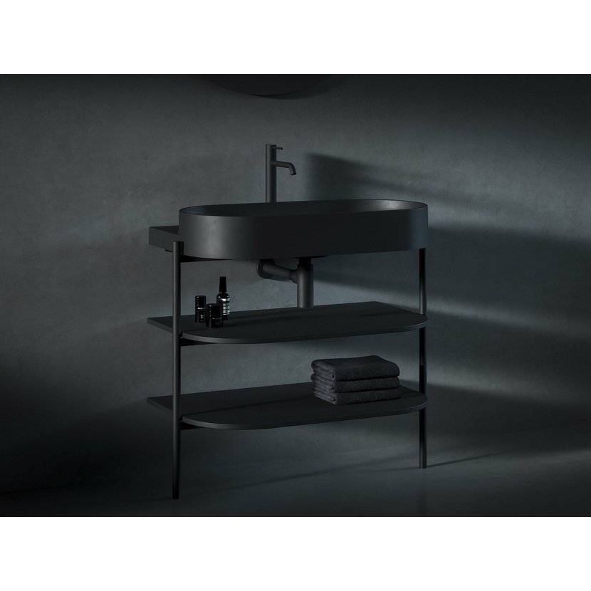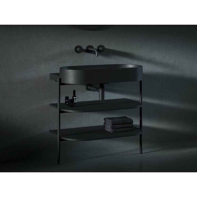 Stojící kovová konstrukce s policemi CS Yard 80 k instalaci umyvadla Yard 80. V černém matném provedení.