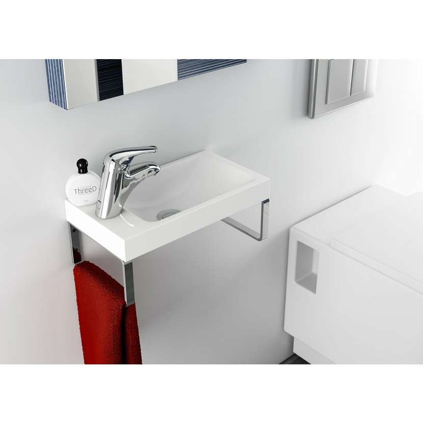 Praktické konzole jsou vhodné i pro zavěšení ručníků. Montážní sada (připojovací hmoždinky, vruty atd.) je součástí dodávky.