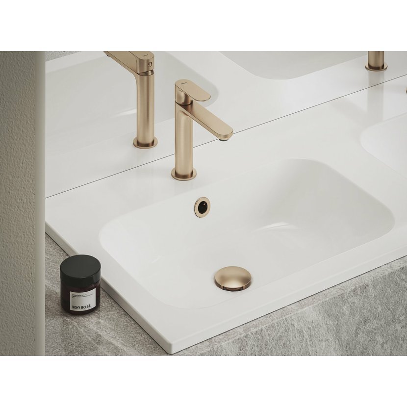 Umyvadlová krytka přepadu v provedení Rose Gold Brushed. Vhodná pro litá umyvadla s přepadem RAVAK.