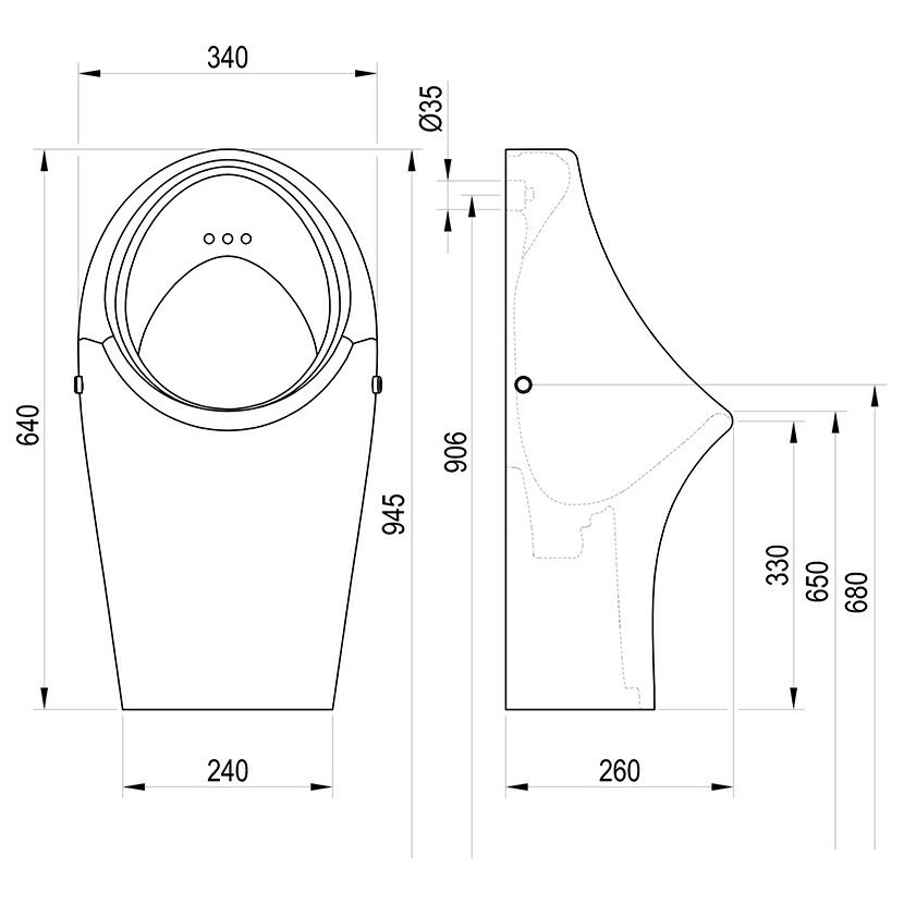 Montážní sada včetně gumové manžety pro připojení vody je součástí balení. Pisoár je kompatibilní s odpovídajícím příslušenstvím pro pisoáry běžně dostupným na trhu.