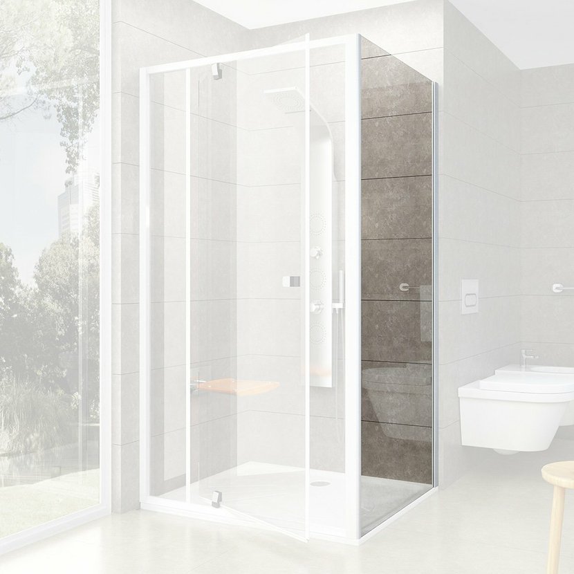 Pevná stěna Pivot v bílém provedení a s výplní z čirého skla s ochrannou vrstvou RAVAK AntiCalc®. Otočný pivotový systém otevírání. Otočitelný výrobek pro levou i pravou variantu.