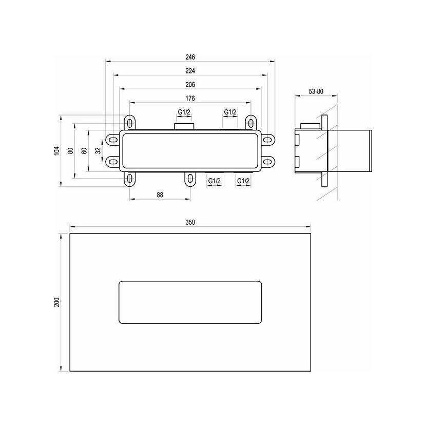 RAVAK RB 07D.50 R-box Horizontal, základní těleso pro podomítkové baterie