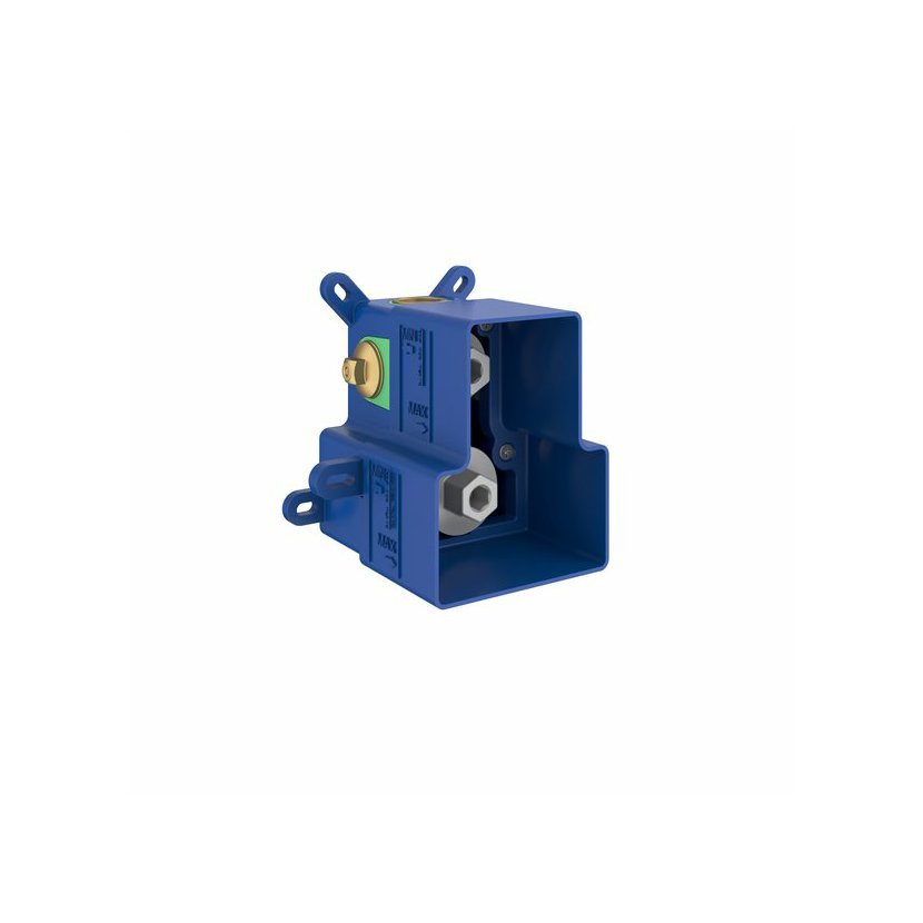 R-box je univerzální instalační systém pro 2-cestné podomítkové baterie, který je zabudován ve zdi. Spodní část baterie integrovaná do R-boxu je vyrobena z kvalitní mosazi, stejně tak jako vrchní část baterie. Na rozdíl od klasických podomítkových baterií je montáž do R-boxu mnohem jednodušší, stejně tak jako případná výměna vrchního pohledového dílu. Vrchní pohledová část 2-cestné podomítkové baterie řady Espirit nebo Eleganta se osazuje až po kompletním dokončení koupelny, a proto budete mít jistotu, že baterie se před konečným dokončení stavebních úprav neponičí, nebo že ze stavby zcela nezmizí.